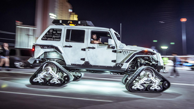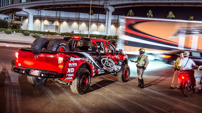 See, after three days of sweating it out in the strip-lit halls of Las Vegas’ Convention Center with nothing but equally sweaty pizza as sustenance, people go a bit deranged. So at 4pm on Friday, both cars and exhibitors are freed of the enormo halls and into the fresh air to blow off some steam, rev their exhausts, and generally go a bit nuts.