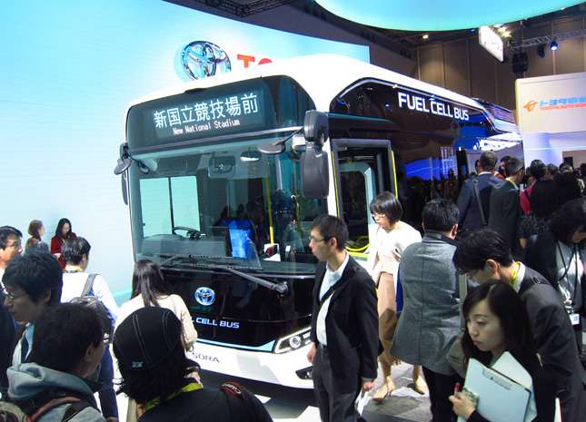 This was a crowd favorite. It was impossible to take a clear photo because people were constantly going into and out of it. The challenge is for the Sora to assist in cutting Toyota's vehicle emissions by 90% by the year 2050. It is fueled by hydrogen and uses electric technology as well.