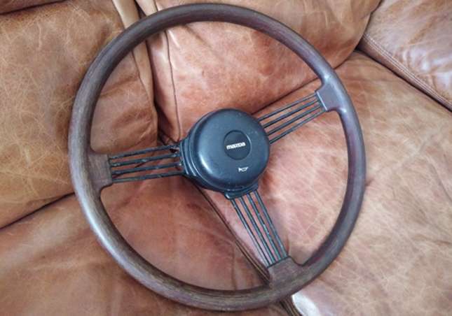 Banjo wheels were very popular in sporting cars from the '30s all the way to the '60s. And Mazda was one of the last manufacturers to put them in sports cars in the '70s. This wheel probably came from a Mazda RX-5 Cosmo. I got it from the used market in New Zealand.