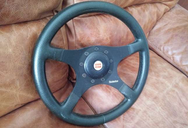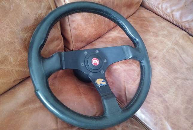 One of the first wheels I bought was a Personal Fitti E3. I think I got this in the late '90s. This is an Italian steering wheel made by Personal and is designed by Emerson Fittipaldi, a Brazilian racer who won the Formula World 1 championship and the American CART (Championship Auto Racing Teams) series in the '70s.