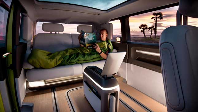 The Volkswagen I.D.Buzz is a concept car and I slept in it. I also, read, ate, typed, and got changed in it. I even drove it. All of which you might see as entirely irrelevant, given it’s a concept car.