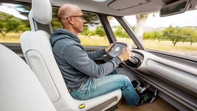 I reckon the one sticking point is autonomy. The Buzz is designed to be self-driving—the steering wheel pulls itself into the dash when you press its center, giving control back to the car.