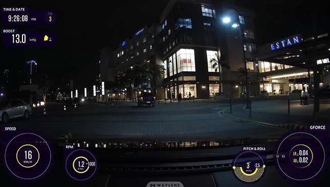The camera has a built-in GPS unit and motion sensors that provide you with your map location, pitch & roll and G-force on top of the data the OBD-II transmitter gets from your car. All this can then be overlaid to your videos through the app. Perfect for bragging about your lap times during track days, or documenting the turtle-like speed of Manila traffic.