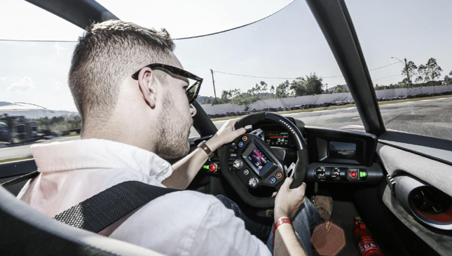 I expect Darren, an ex-Lotus chassis technician, to instruct me on a launch sequence that requires a degree in electrical engineering, and triple-jointed limbs. Wrong. Left toggle switch down for Master Power "on". Next one along (Power Mode) into "P2". Switch gaze to steering wheel, and twist the right knob from Neutral into D2. The drivetrain is silently armed. I’m ready to go. It was more difficult last time I changed the clock on my cooker.
