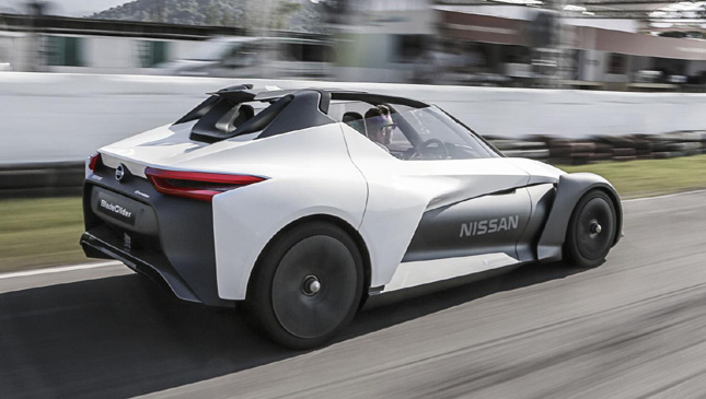 In 2013, the BladeGlider road car concept was unveiled at the Tokyo Motor Show, then quietly re-veiled as Nissan dealt with a legal challenge from DeltaWing partners Panoz—explaining the subtle "Inspired by DeltaWing" legend stuck to the back.