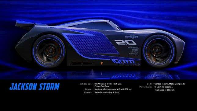 Jay Shuster: The standout is Jackson Storm. He’s McQueen’s primary competition. Basically like what we did for McQueen in the first film, design a car that sets itself apart from the other racers on the track.