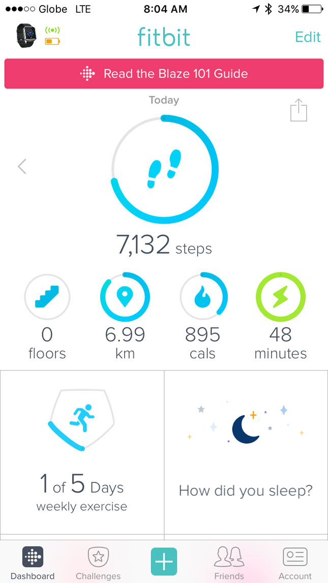 With the Blaze, I get to monitor my steps, distance, running times, and calories burned. I burn at least 270 calories in my 5km runs, at a 5-minute-per-kilometer pace, and it took more than 5,000-plus steps to finish it all in 29 minutes. Thanks to devices like the Blaze, I can keep tabs on my progress. It’s also built to keep track of other activities like biking, weightlifting, or using the elliptical or treadmill.