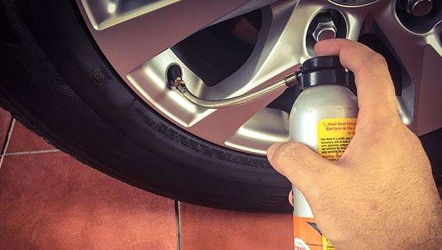 6. Investing in a tire repair kit/anti-flat solution. I discovered a few years ago that automotive shops carry quick-fix flat repair solutions—and they work! Basically, you just need to connect the can to your flat tire's air valve, and it will pump compressed air and a liquid solution to find the puncture and seal it until you are able to bring your car in for a professional patch-up. Make sure to follow instructions precisely. You'll thank yourself later when you're caught in a thunderstorm and realize you've got a flat to deal with.