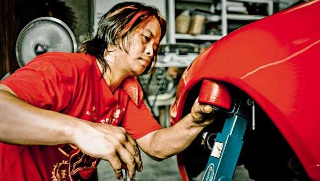 When fitting wider wheels and using a lower suspension setup, there is a possibility that the tires of your car will rub up against the fenders when you tackle corners, or when traversing undulating sections of road. Carrying passengers and heavy cargo might also cause this annoying rub. If you choose to do so, you can fold the inner lip of the fender in. This is actually a very common thing to do among the folks who like to ride low. Here’s how it is done.