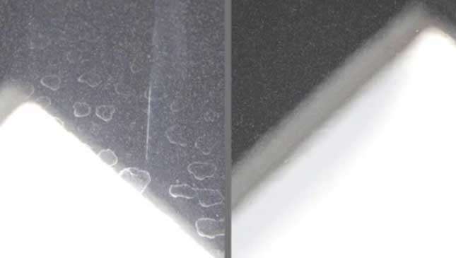 The key here is keeping the clay sliding smoothly on the surface until the entire area has been worked. Inspect the paint by wiping the surface to see if it has removed the acid rain marks. Repeat if necessary.