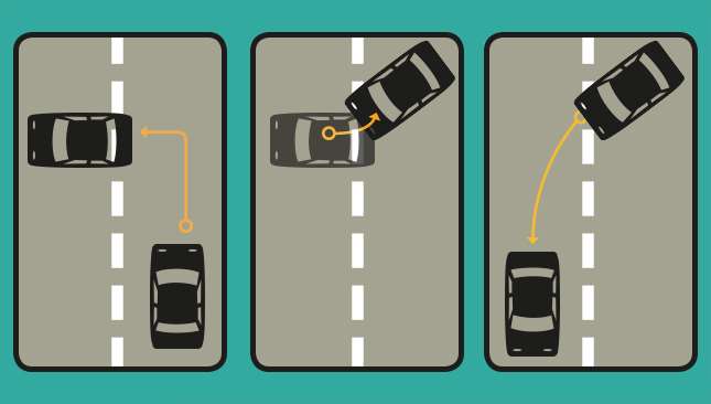 4) When you're about one meter away from the opposite gutter, turn the wheel to the right to straighten the car out, then stop.