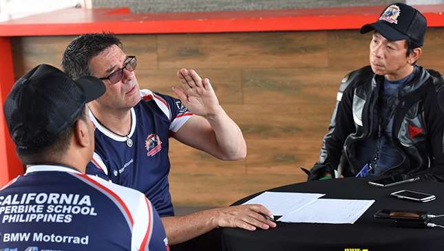 Aside from mastering the riding characteristics of your motorbike, it would also be beneficial if you familiarize yourself with the track--straights, corners, pit lane entry and exit--before training day. Get a printout of the track layout or check it on the website. Familiarity with the circuit gives you more confidence in attacking the corners while executing the training exercises.