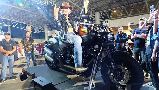 At the event venue, Smith leaned on the steel railing with his Epiphone Les Paul guitar while watching the sexy female Harley models reveal the seven brand-new Softail motorbikes. “Para akong nilabasan, pre!” said the 70-year-old Pinoy rock icon when he saw the awesome bikes. Since his childhood days, he had been dreaming and drooling over those American heritage bikes.