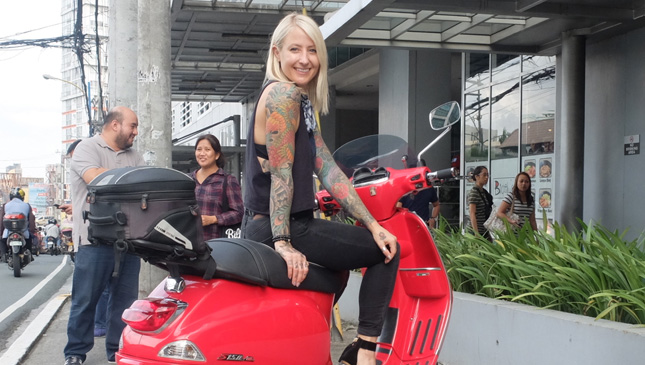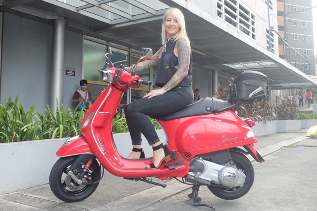 Going back to Jaime. Sorry IMRG riders, don't push your luck because she will ride solo during the motorcade. Will she be on a scooter just like when she first visited the Philippines a few years back? Nope. The photo above shows Jaime Dempsey sitting on a Vespa scooter owned by yours truly. The photo was taken during an interview at the Summit Media office exactly two years ago.
