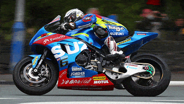 Riding the winning bike of Bennetts Suzuki team is Michael Dunlop, a 28-year-old Irishman who has won the Isle of Man TT 14 times.