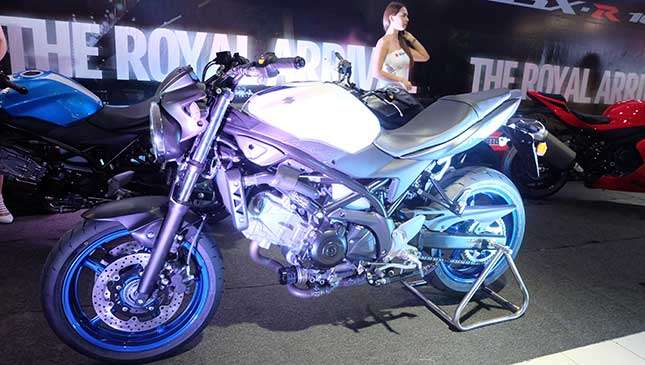 The SV650, a sporty V-Twin naked equipped with Dual Spark Technology, new-design pistons, Suzuki Dual Throttle Valve, fuel injection and Low RPM Assist Control, is priced at P399,000 (black, blue and white).