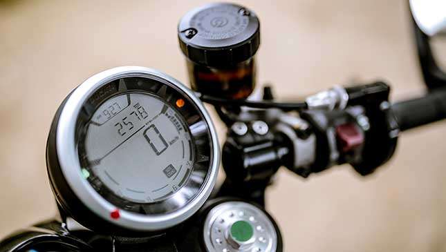 The single round chrome-laced dial with an LCD monitor is politically correct for this retro-styled bike. But it lost pogi points for lacking gear indicators and a fuel gauge. When revving, the RPM level that stretches at the outer edge of the dial can hardly be seen.