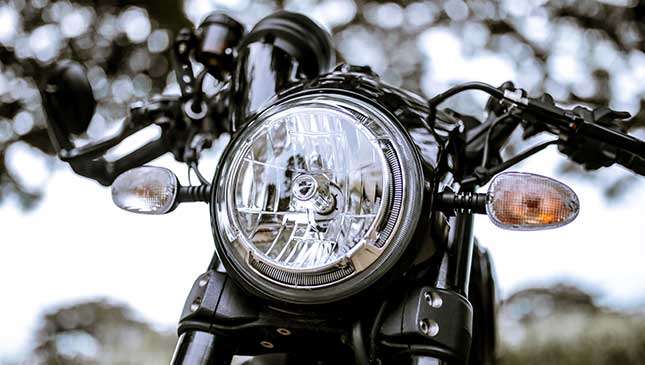 If the Icon and the Classic have raised handlebars and lower seats, it’s the other way around for the Café Racer. The low clip-on handlebars and increased seat height of the Café Racer have a sportier feel. Although pint-sized, the side mirrors mounted on the bar ends give the rider ample view of what's behind and at the sides.