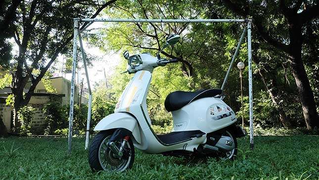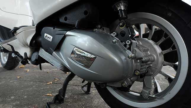 The front suspension uses a single-sided, trailing-link setup with a coilover monoshock that offers an uncomparably comfy ride. The rear suspension works with a coil spring with four settings of adjustable preload that gives 2.75in of travel. This sweet little ride glides over humps with ease. The brake levers are soft and easy to operate, making it user-friendly for lady riders. Unlike the Vespa PX, there Sprint has no clumsily-designed, long stemmed foot brake in the middle of the stepboard.