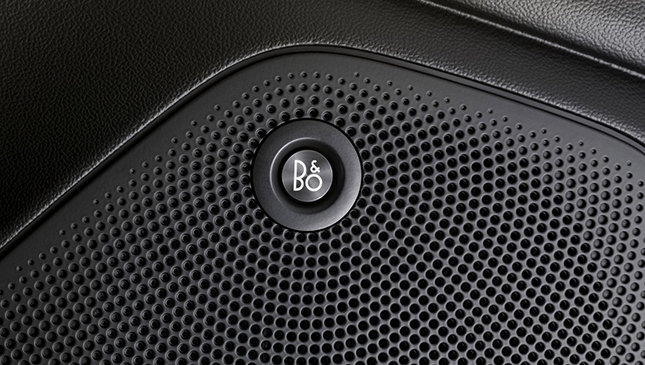 An optional B&O sound system uses 10 speakers. Among them are a front center mid-range cone, and a sub in the trunk. It’s all driven by 675 watts of amplification. Digital signal processing gives you surround sound options, and aims to give a good stereo image to everyone in the car.