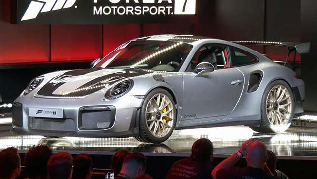 Yup, a gaming event. Not at a motor show, nor at a race or similar event, but presented instead in front of an audience at the highly anticipated E3 expo in Los Angeles. Dan Greenawalt, Forza’s creative director, introduced the mad, bad, bewinged Porsche on stage: “For the first time in history, a flagship supercar is making its world debut here, at E3, in front of you.”