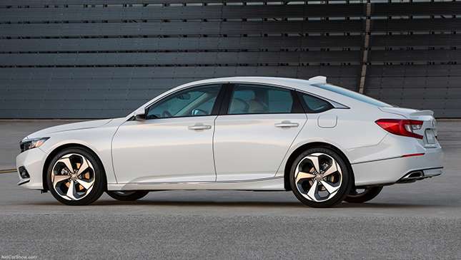 With its new look, Honda turned to the fundamentals of design and proportion to come up with the Accord’s athletic stance. It’s low and wide, which the company says provides better visibility and seating position for the driver. The wheelbase has been extended by 55mm, but the overall length is cut by 10mm. You can choose between 17- or 18-inch alloys.