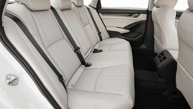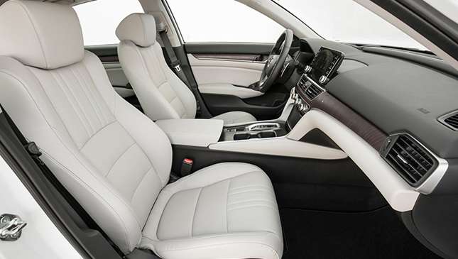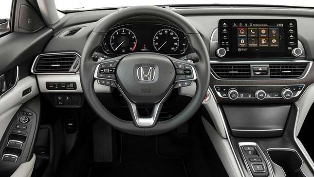 Inside, the Accord gets more space and tech to go along with the cabin’s premium vibe. The trim and dash materials are soft to the touch, Honda says, and the driver’s side features a 'sport-inspired' steering wheel. The seats are equipped with improved padding as well.
