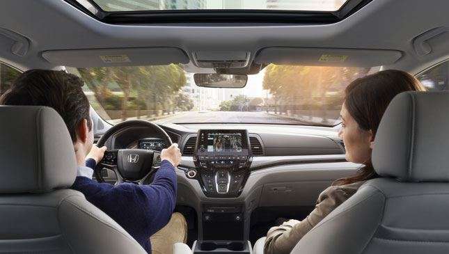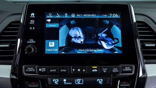 The interior is where the new Odyssey truly shines, featuring enough screens and tech to mimic your family living room. The driver's meter has a 7-inch full-color TFT display, while in the center of the dash is an 8-inch high-res touchscreen that's available on certains variants. The latter is compatible with both Apple CarPlay and Android Auto. Once connected, you can stream videos from your phone through the ceiling-mounted 10.2-inch entertainment system in the rear, as well as control the rear cabin heat and air-conditioning. There is also a camera inside that allows the driver and front passenger to monitor things in the rear.