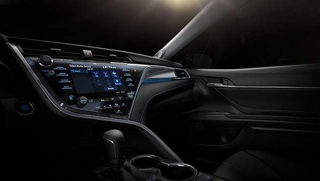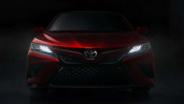 The 2018 Camry's most notable design changes are its two-piece grille and slightly lower hood; results of a new approach Toyota calls a 'Keen Look' design philosophy. More aggressive front and rear fenders have been added along with its futuristic new lamps, while the car's sleeker profile—a result of the designers' mission to pursue a wind-cutting shape, Toyota says—provides it with better aerodynamics and a sportier overall vibe.