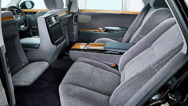 Soft 100% wool upholstery, high-end leathers, and a 20-speaker audio system. Are we describing a car, or the Japanese emperor's personal living space?
