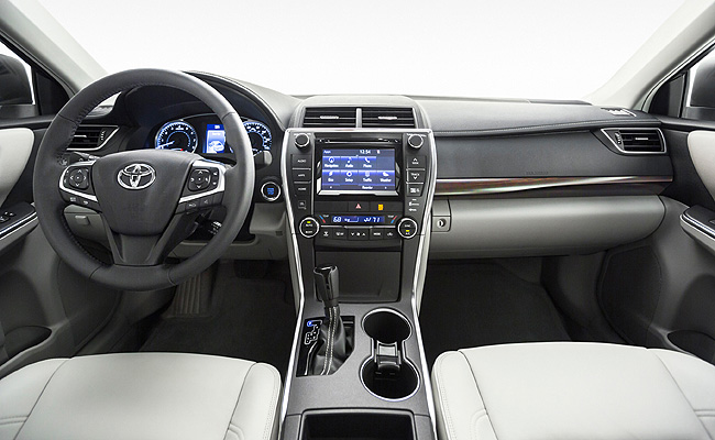 For its interior, the updated US-market Camry gets an eight-way power driver's seat with power lumbar support; shift lever boot with contrast stitching; and satin chrome interior accents. Depending on the variant, the Camry also gets seven-inch touchscreen multi-information display, tire-pressure monitoring system, leather-trimmed seating, four-way power passenger seat, Entune Audio Plus multimedia system, LED high and low headlights and daytime running lights, 18-inch alloy wheels, smart key entry, power tilt/slide moonroof, and Qi wireless charging capability.