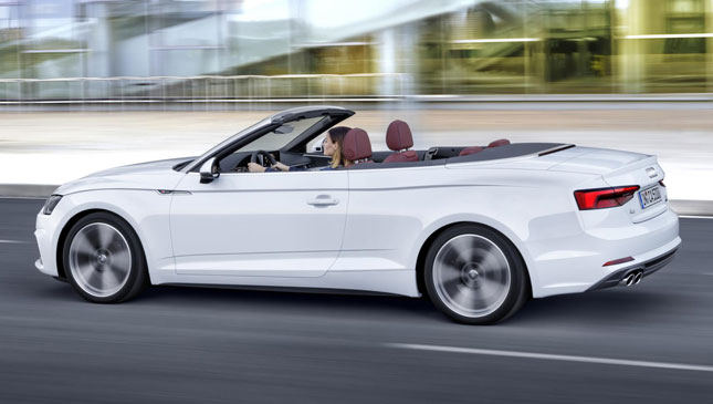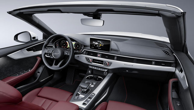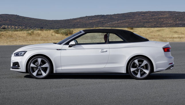 Everything else is very much as you were. There’s the normal roster of 2.0- and 3.0-liter petrol and diesel engines (including an S5 Cabriolet, with 349hp, a 249kph top speed, and a 5.1-second 0-100kph time), Quattro or front-wheel drive, and manual or automatic. Inside you can specify Audi’s excellent technology suite, and because this is a convertible it gets microphones in the seatbelts so the voice control can still hear you with the roof down.