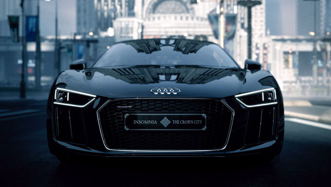 This R8 coupe, dubbed the "Star of Lucis," sports a few modifications to fit within the film's universe. The black paint job represents the fictional Lucis Royal Family. Painted on the black are arabesque patterns that symbolize peace, blessings, and well-being. The wheels, meanwhile, have their own intricate patterns that feature sword emblems. Inside, the leather-wrapped steering wheel features custom orange stitching.