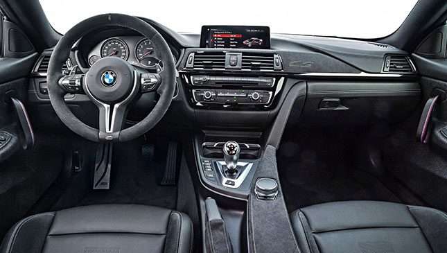Clashing slightly with the use of lightweight materials is the still-plush interior, which gives away nothing in equipment and gains much leather and Alcantara. Expect the M4 CS to still weigh nearly 1600kg, then.