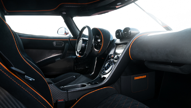 The Agera's interior is just as unique as its outer appearance, thanks to black Alcantara accentuated by orange stitching. Of course, the cabin can switch between a closed roof or an open top in minutes. That lightweight roof can even be stowed up front under the hood cover. Plus, it comes with a slew of creature comforts that make it a truly livable megacar: adjustable pedals, ceramic brakes with smart ABS, an active lift system for the suspension, active shock absorbers, G sensor, and tire-pressure monitoring, just to name a few.