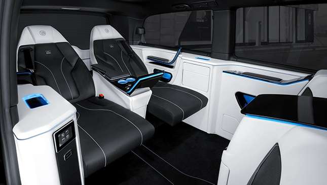 Other niceties include an integrated fridge, a coffeemaker, a bar compartment and high-speed LTE router. For privacy, the Brabus Business Lounge gets the company's Magic Glass, allowing passengers to adjust window opacity with the touch of a button, and an electronic safe.