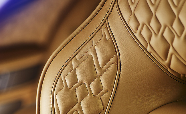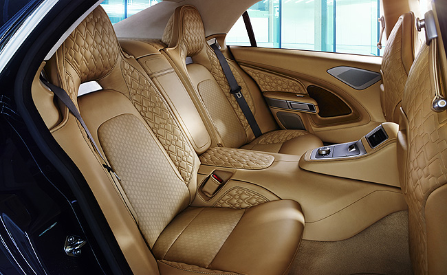 Well, nearly a month later and the British luxury carmaker is now providing a glimpse of the Lagonda's insanely detailed interior. All you really need to do is look at the diamond-like pattern on the seats and seatbacks to know what we're talking about. Even the lining on the ceiling mimics the diamond pattern.