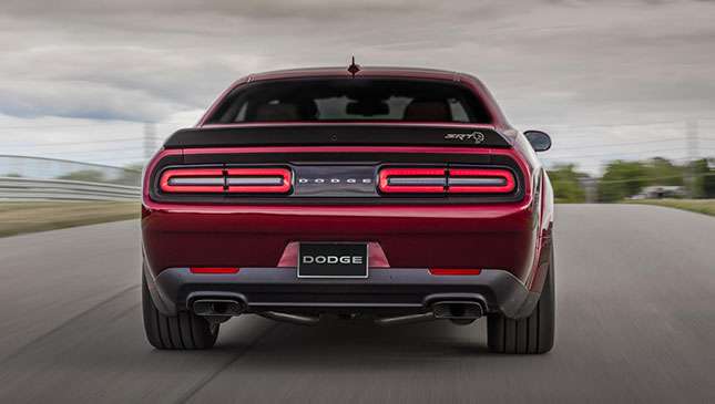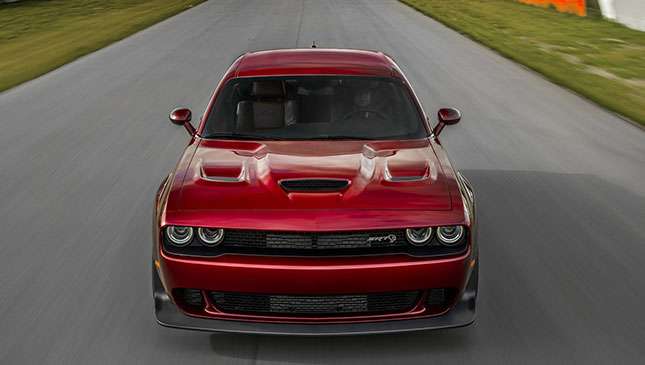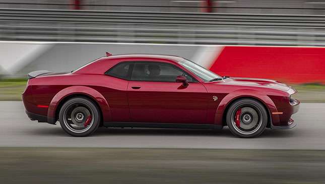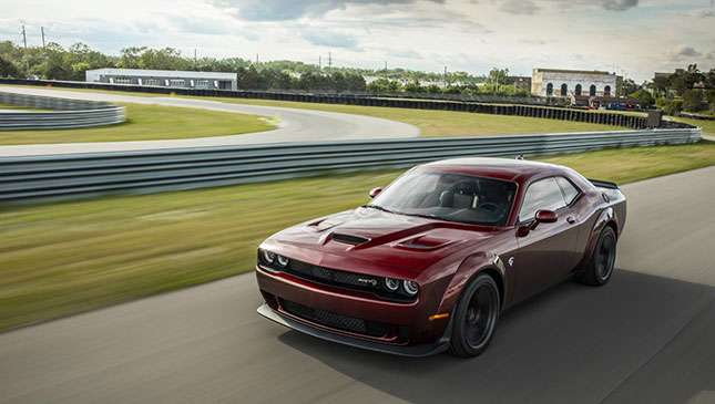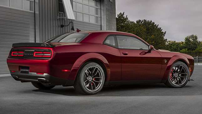 According to Dodge, the addition of a wider track gives the still-fearsome Hellcat "improved performance on the street and a bolder, more aggressive new look." The 3.5-inch extra width, along with 20-inch x 11-inch 'Devil's Rim' alloys and Pirelli P-Zeros means more face-distorting fun on track.