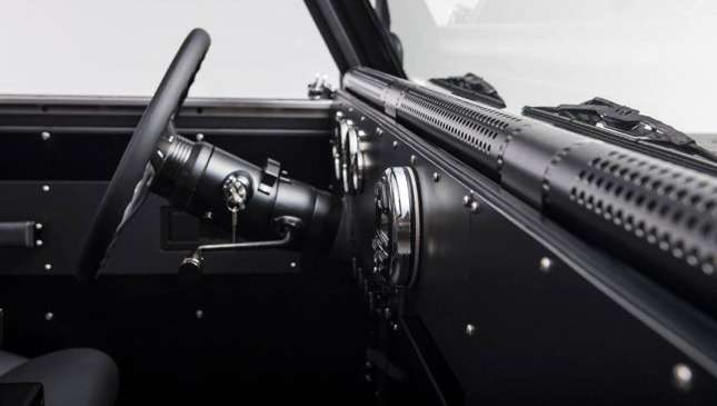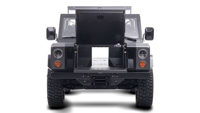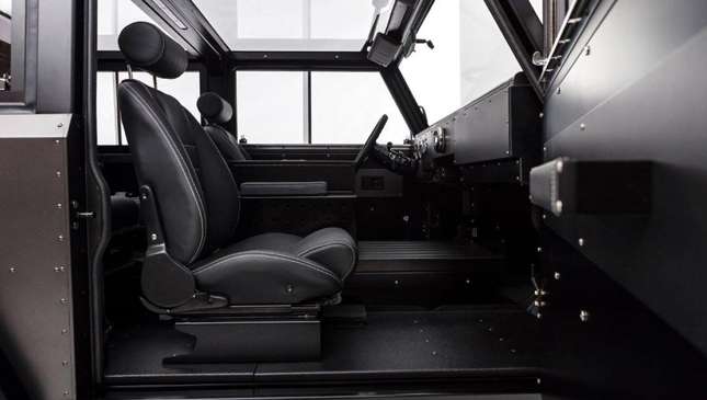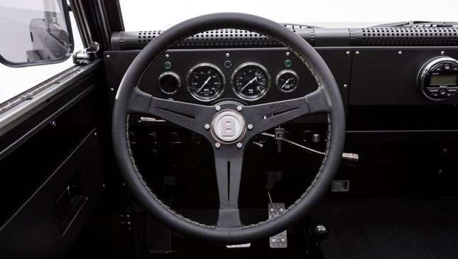 Bollinger quotes approach and departure angles of 56 and 53 degrees respectively, with a break-over angle of 33 degrees and 394mm of ground clearance. However, because the B1 rides on fully-adjustable, self-leveling, four-wheel independent, hydro-pneumatic suspension with "disconnectable" anti-roll bars, it can be raised much more. Up to 508mm, in fact. Weight balance is a perfect 50/50, the power steering is hydraulic (yay) and it'll tow almost three tons worth of cargo.