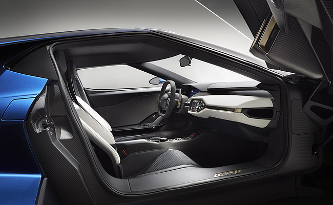 The GT also makes extensive use of lightweight materials like carbon fiber and aluminum, supposedly giving it one of the best power-to-weight ratios of any production car. Ford's use of these lightweight materials is highlighted by the carbon-fiber passenger cell and the aluminum front and rear subframes encapsulated in structural carbon-fiber body panels.