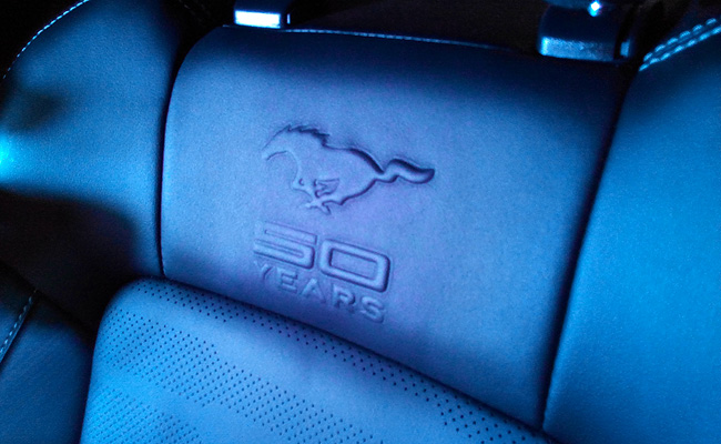 Based on the production-version sixth-generation Mustang, the 50 Years Limited Edition model is equipped with the same 5.0-liter V8 engine of the standard car and packs 435hp and 542Nm under the hood. Cog-swapping is done through a six-speed SelectShift automatic transmission via the steering wheel-mounted paddle shifters.