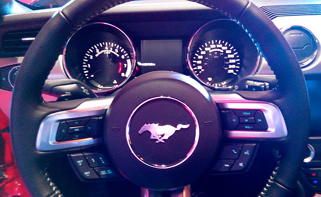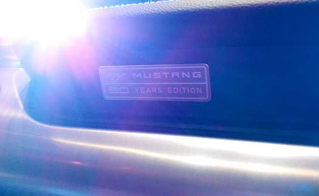 What differentiates it from the standard sixth-gen Mustang are the 50th-anniversary touches like the trapezoidal grille and the chrome-like frame around the Mustang logo, which can also be found on the three taillight blades. Of course, 50th-anniversary badges can also be found all over the car, like on the large faux gas cap on the rear fascia, and on the passenger side of the dashboard. Capping all these are the 19-inch Luster Nickel-painted aluminum wheels.