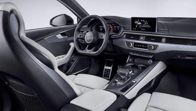 The rest of the powertrain is as per RS5, so eight-speed auto and an optional rear sport differential. Standard suspension drops the car 7mm lower than a cooking A4 on sports suspension, while adaptive dampers, ceramic brakes, and variable ratio steering are all found on the options list. An overall curb weight of 1,790kg is 80kg less than its predecessor, and if you drive like a saint it'll use 17% less fuel.