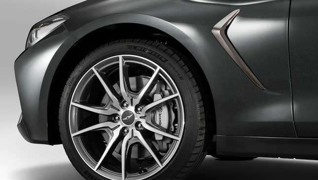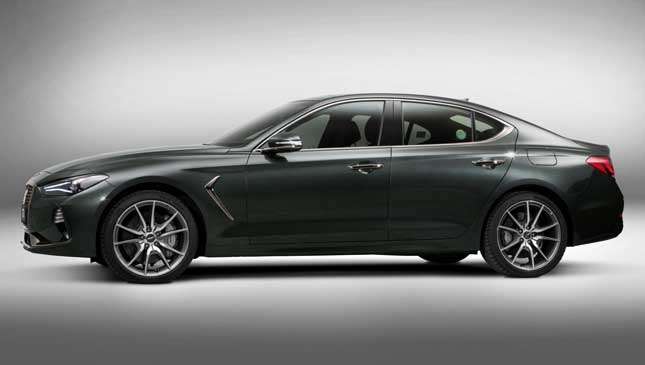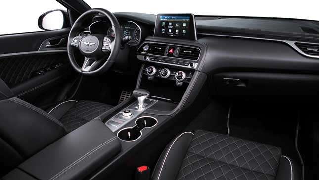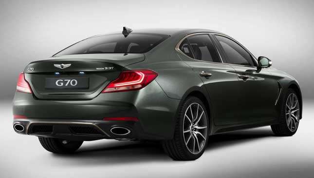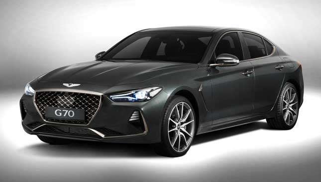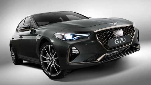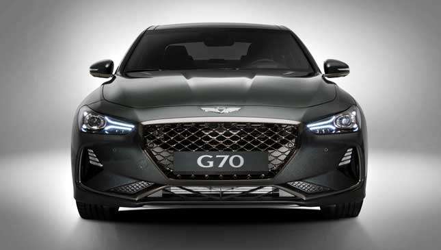 Underneath the G70, if you were to break out the angle grinders, you’d find the same rear-drive platform as the Kia Stinger. The engine lineup is shared too: You can have a 2.0-liter gasoline, a 2.2-liter turbodiesel, or a 3.3-liter turbo V6 with 350hp.