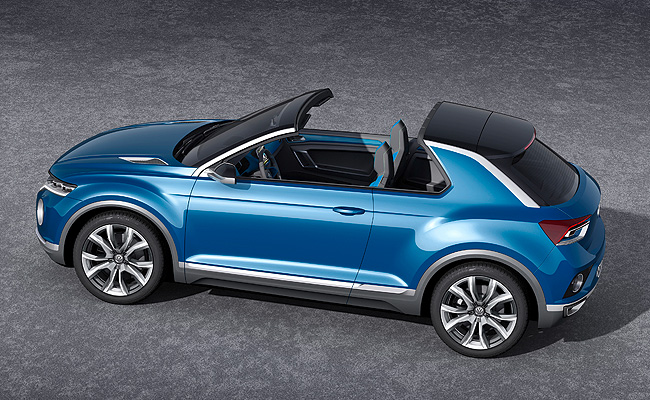 The T-Roc has a progressively designed front end, and sports a split-roof section in the middle that can be taken down and stowed in the trunk, giving it the capability of an all-wheel-drive SUV and "the summery airiness of a convertible."