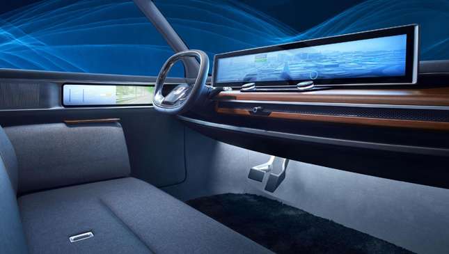 There are four seats and Honda claims a 'lounge feeling' inside. We think that means an airy space and nice materials, not tea-stained mugs lying about the place begging to be washed up. Screens aplenty, too, with a ginormous one stretching right across the dashboard and one on each door, with cameras in lieu of wing mirrors. Well, it is a concept car.
