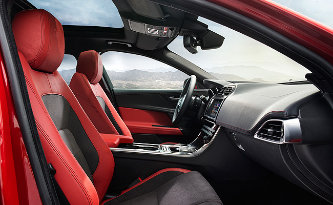 For its interior, the front-seat passengers are cocooned by the deep center console, giving it a cockpit-like feel. Its instrument dials are also inspired by that of the F-Type with the needles sweeping up on start-up to further emphasize the XE's sports sedan attributes.