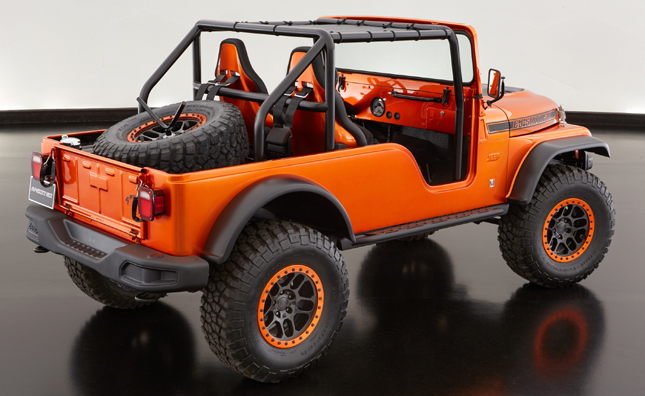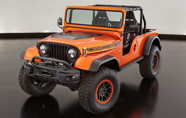 FCA and Mopar are currently showing off six customized vehicles at SEMA 2016. The most impressive of which has to be the Jeep CJ66. The one-of-a-kind Jeep is a mashup of three different models: a Jeep Wrangler TJ frame, 1966 Jeep Wrangler CJ body, and a few bits of the Wrangler JK here and there. It features Mopar Dana 44 front and rear axles for better off-road performance, as well as monstrous 35-inch all-terrain tires. And in that Copper Canyon (frankly, we would've settled for a simple "orange") hue? It's attractive as hell.