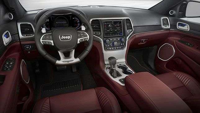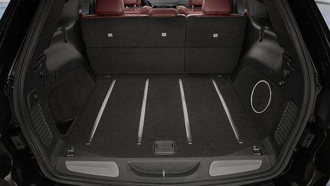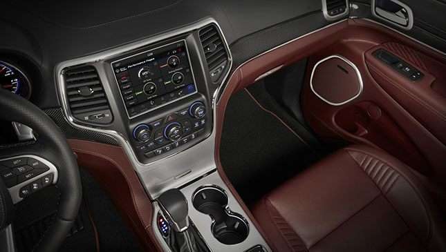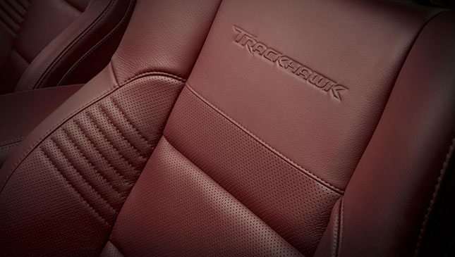 The inside has been jazzed up with red and black leather and suede seats complete with 'Trackhawk’ emblems, a speedo that reads all the way to 322kph and flourishes of carbon fiber. There’s an air of comfort and function, thank to plenty of displays, Apple CarPlay and all the cubby holes you’d expect from a family off-roader.