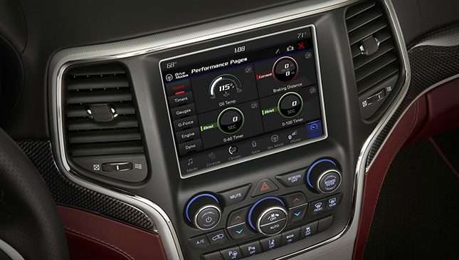 Like all proper Jeeps, it’s four-wheel-drive with an electronic limited-slip diff at the back and a single speed active transfer case. The torque split varies depending on what mode you’re in, but in the most hardcore ‘Track’ setting, you’ve got a 30:70 front-rear split. Given that the lower-powered SRT Cherokee is more than happy wagging its booty and lifting a front wheel, we’re sure that this much more powerful Trackhawk will also oblige in similar hoonery. And to be honest with you, we’d be disappointed if it didn’t do a four-wheel burnout.